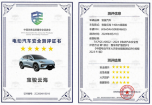 憑借著神煉電池以及自身安全系統(tǒng)的不俗表現(xiàn),寶駿云海在電動汽車安全測評中,連續(xù)2次被針刺都展現(xiàn)出全程無熱擴(kuò)散、無起火和無爆炸現(xiàn)象,最終獲得了中國電動汽車安全測評五星+認(rèn)證。