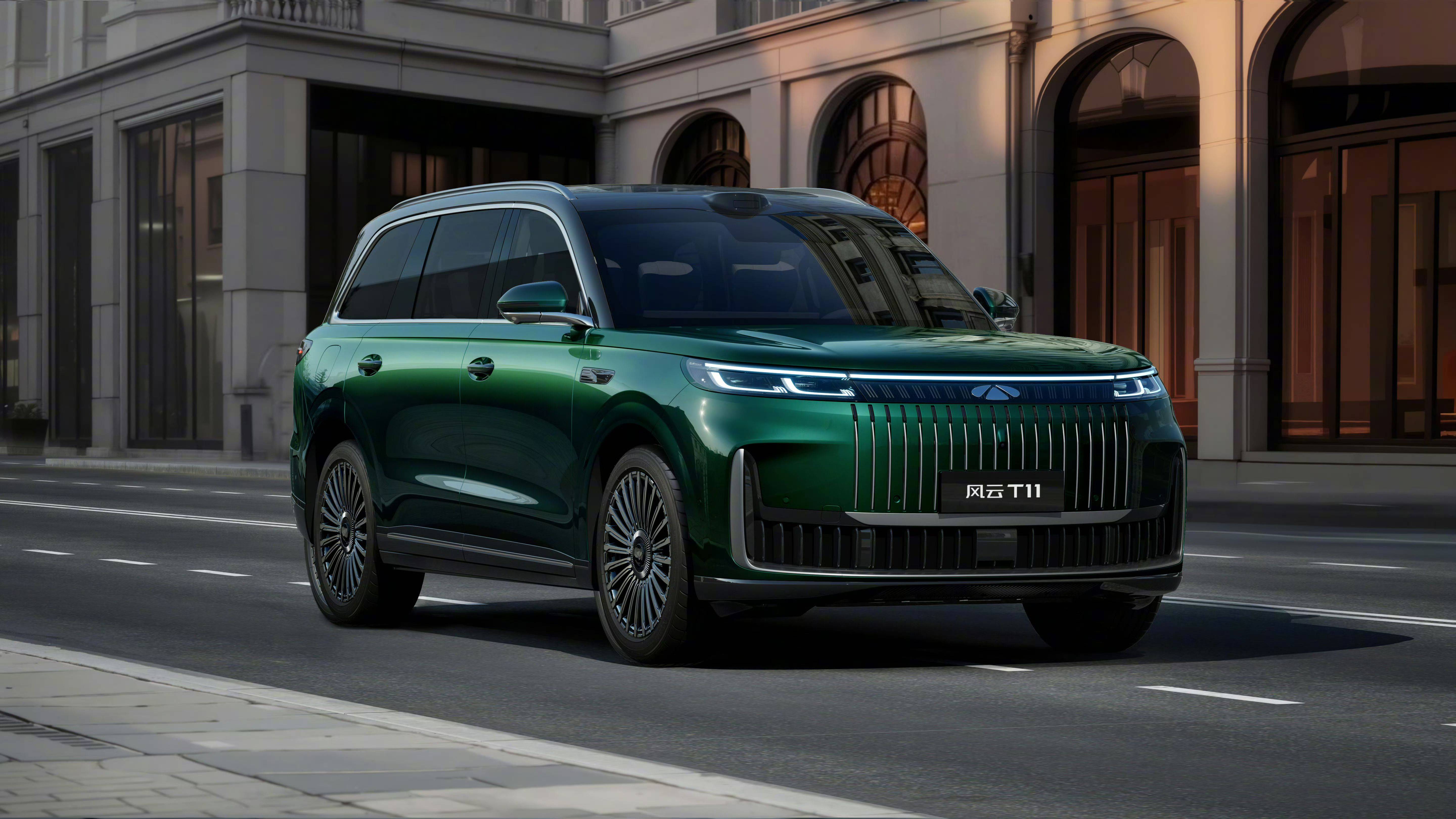 風云T11定位大型SUV,增程式車型,搭載1.5T渦輪增壓發動機作為增程器,五門六座,車身長度5205mm,軸距3120mm,采用的動力電池,大概率會是國軒高科。
