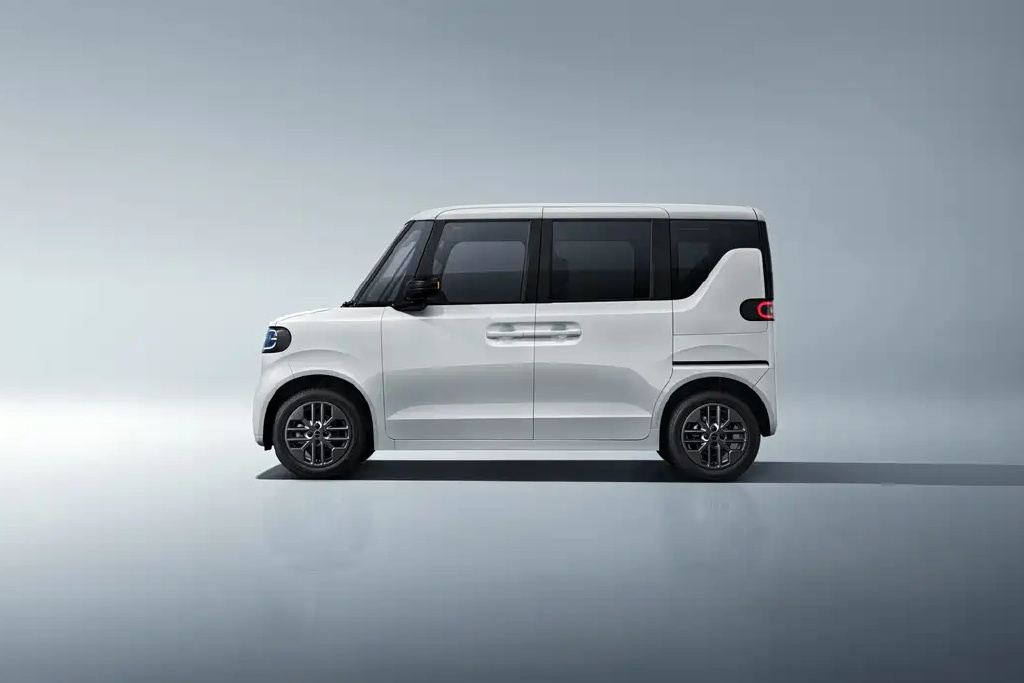側(cè)面采用了懸浮式車頂以及四輪四角的比例,保證了盡可能大的車內(nèi)空間,車門采用了MPV同款的前平開門后側(cè)滑門。車身的長寬高分別為3395/1475/1800mm,車內(nèi)采用4座布局。