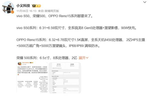 OPPO官宣Reno15系列11月10日發(fā)布 宋雨琦代言?