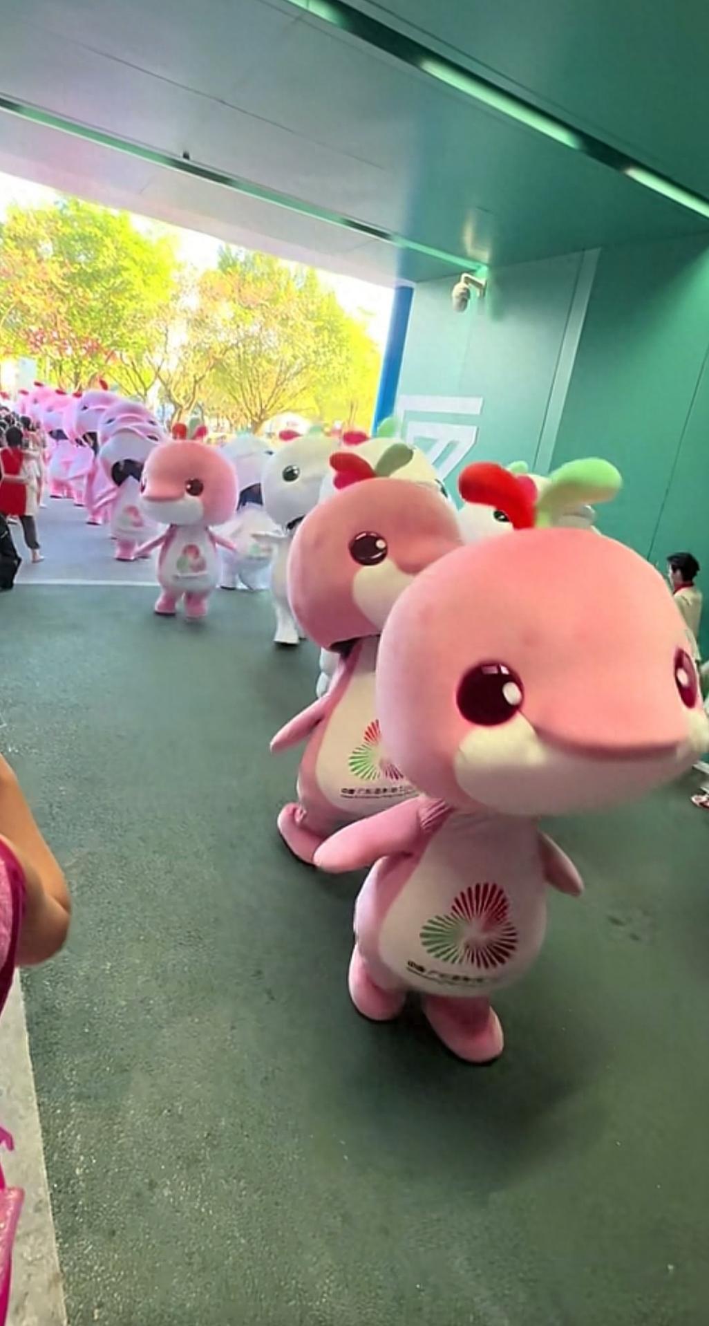 最近刷爆全網的“大灣雞”,其實是2025年第十五屆全運會的官方吉祥物“喜洋洋”和“樂融融”。官方設計超用心,原型是中華白海豚,粉白配色貼合海豚的生理特征,頭頂三色浪花還藏著廣東、香港、澳門的地域元素,象征三地同心和人與自然和諧共生。可架不住廣東網友的“干飯基因”,圓潤的體型、粉白的顏色,一眼就聯想到了白切雞和豉油雞,“大灣雞”的昵稱就這么火了 。從一開始小紅書的調侃,到微博發酵,再到抖音表情包刷屏,連新華社都引用這個昵稱,官方不僅不反感,設計師還幽默回應“低估了廣東人對吃的執著”,直接“打不過就加入”,讓這場民間玩梗變成了全民狂歡。