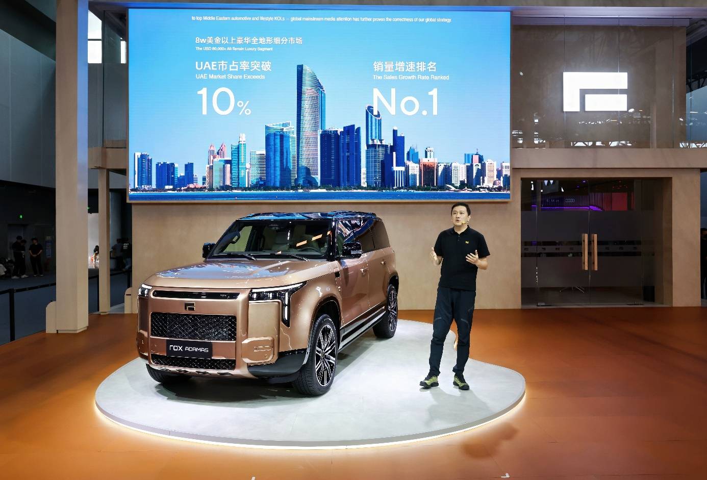 2025年,極石汽車全球化布局成效顯著。截至目前,品牌已成功進入近40個國家市場,形成覆蓋中東、中亞、北非等重點區域的銷售網絡,并連續10個月實現銷量穩健增長。在以豪華著稱的阿聯酋市場,極石汽車在8萬美金以上豪華全地形細分領域中市占率突破10%,銷量增速位列第一,展現出強勁的發展勢頭。本屆廣州車展期間,極石汽車進一步拓展全球市場,與來自喀麥隆、突尼斯、摩洛哥的優質合作伙伴完成簽約,持續推進渠道網絡的全球化建設。
